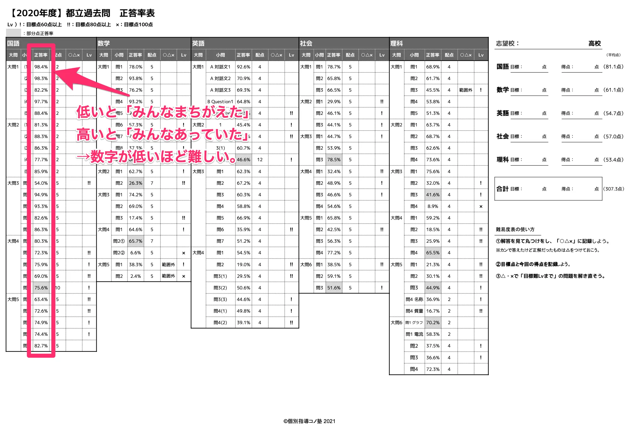 この正答率表ですが、より効果的に活用できるように、いくつか工夫があります。