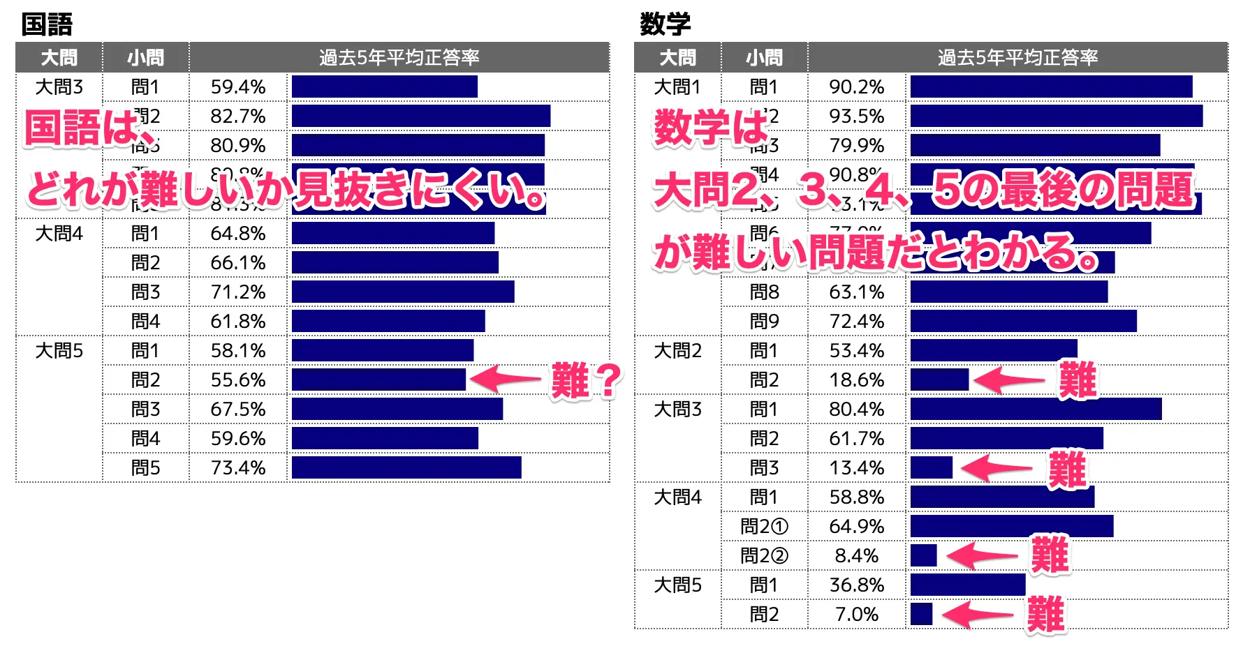 さらに、国語はどの問題が簡単かが年によって変わっています。