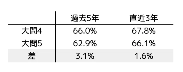 大問4と大問5の平均正答率はそんなに変わらない