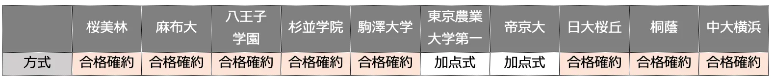 東京農業大学第一高等学校、帝京大学高等学校は加点式です。