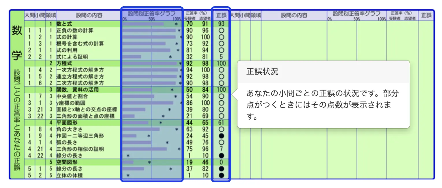 - 見るべきは、「何ができなかったか」「合格ラインまで何点か」