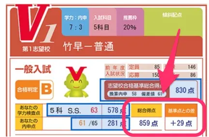 - 合格ラインは、+/-100点を基準に志望校を決める