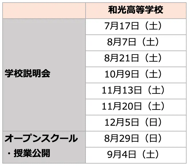 和光のイベントは、「学校説明会」と「オープンスクール」です。