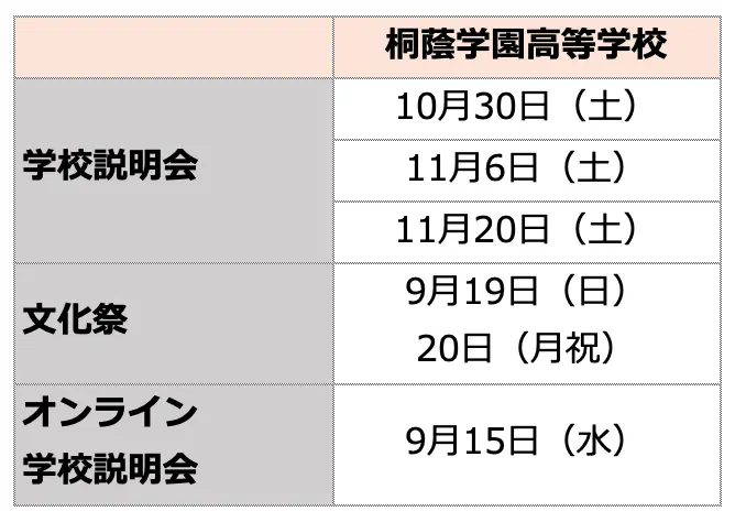 桐蔭学園のイベントは、「オンデマンド学校説明会」と「中3対象学校説明会」です。