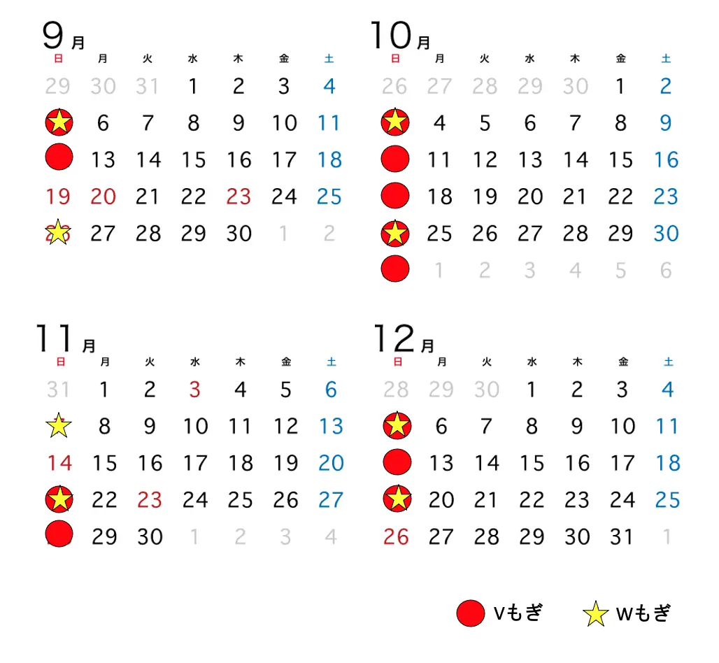 2021年のVもぎ・Wもぎの日程は以下の通りです。