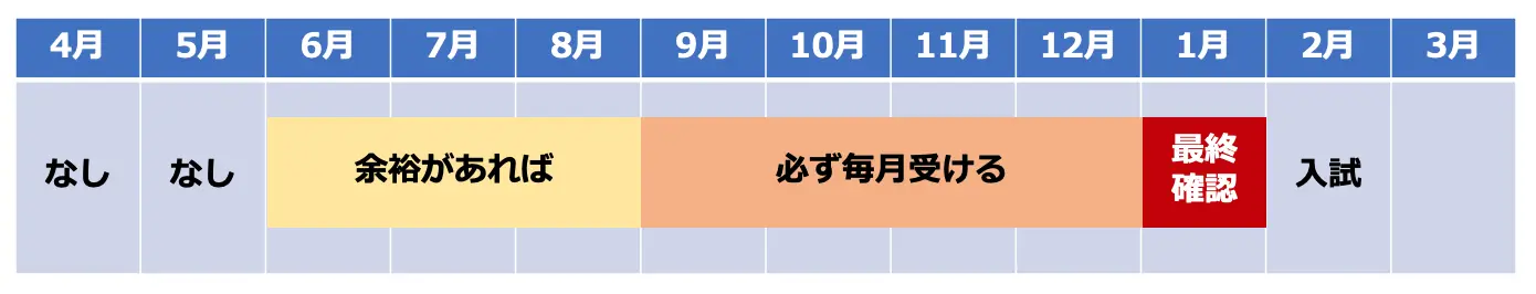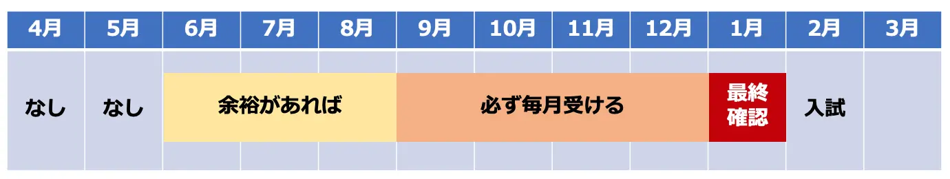 模試の一番の目的である受験勉強の進捗をしっかりと測るためにも、この時期の模試はすべて受けましょう。