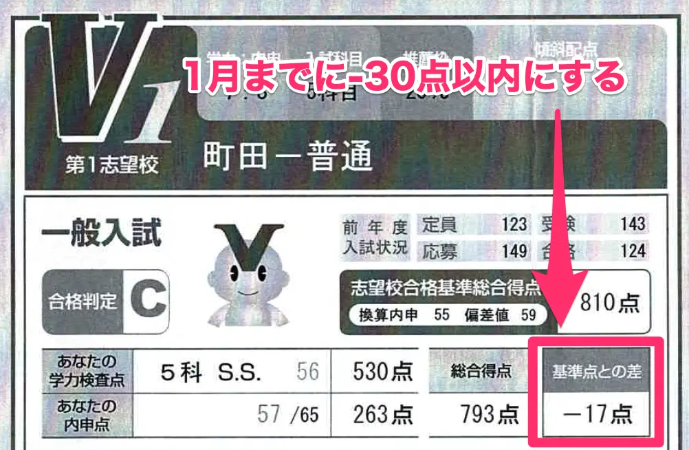 「1月Vもぎ、C判定、合格基準点-30点以内」を目指す