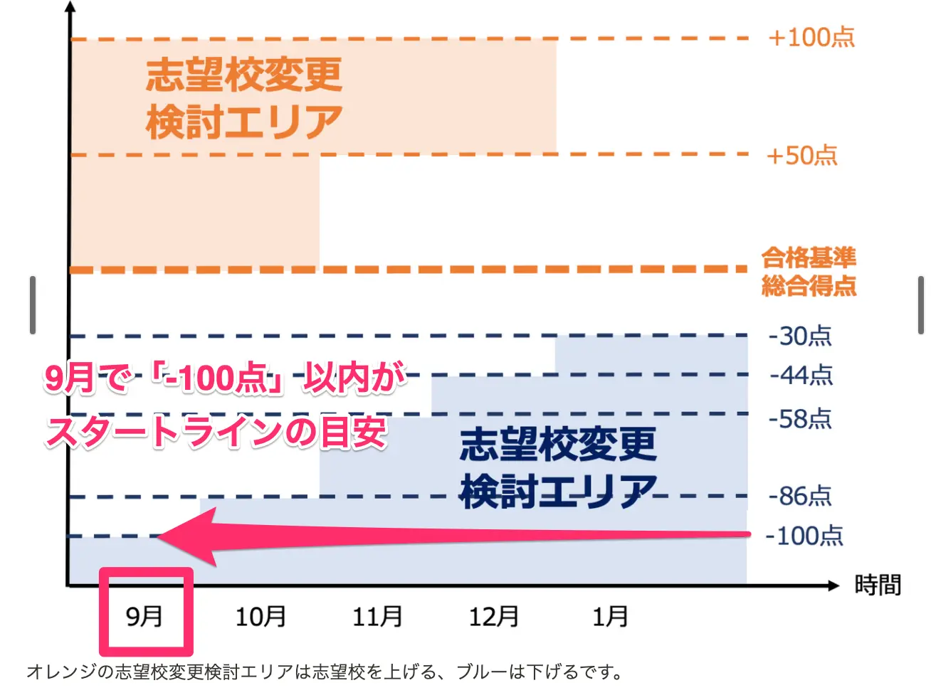 「9月に基準点-100点→1月に基準点-30点」をどのように達成していくか?