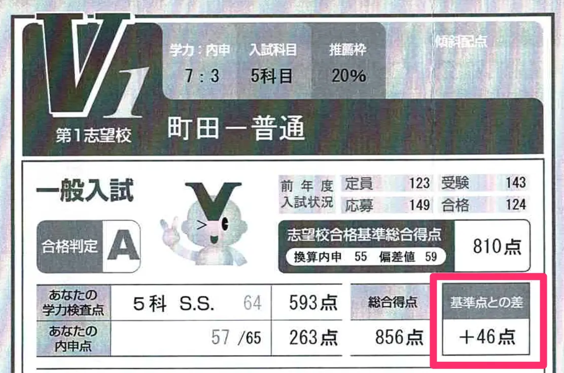 Vもぎの結果を見る際、 「合格基準点」と「基準点との差」 がものすごく重要になってきます。