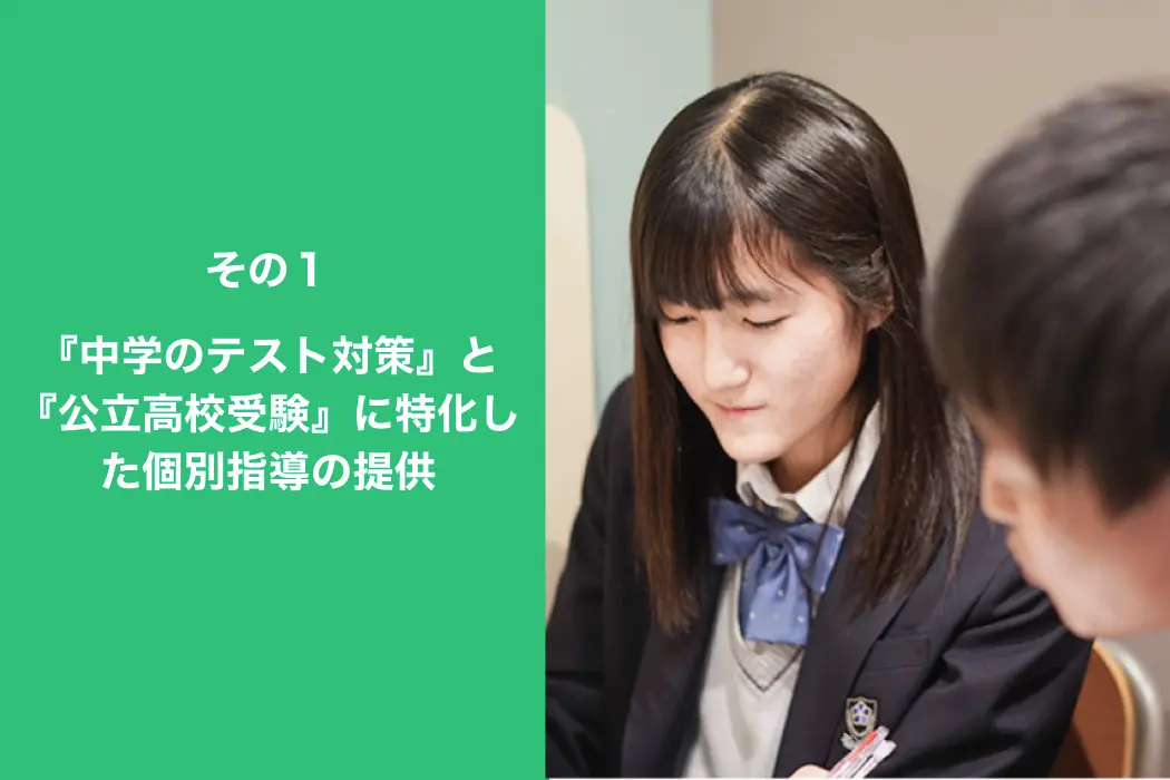 中学生向けコースは、 『学校の定期テスト対策』と『公立高校受験』の個別指導のみ 。