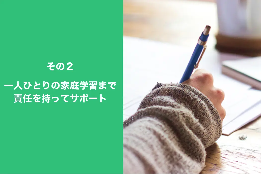 個別指導で提供 することで、通塾スケジュールや科目を一人ひとりに合わせ、無理なく通ってもらえるようにしています。分からないことも、安心して先生に1対1で相談できる環境を整えています。