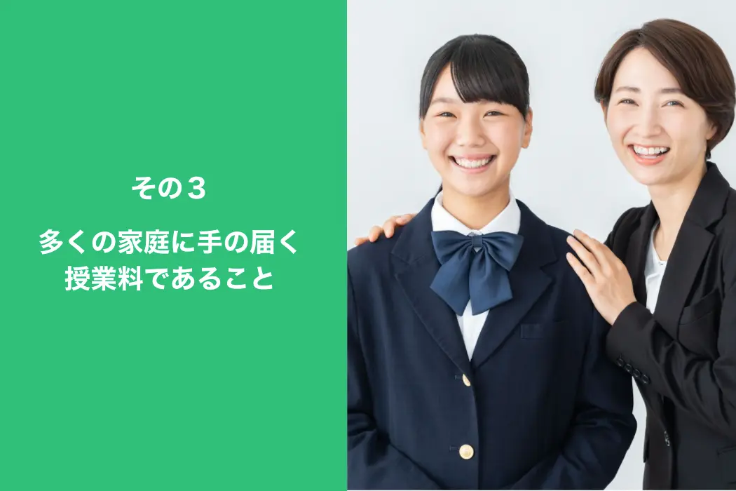 以上3つが、コノ塾の生徒が9割も成績アップするヒミツとこだわりです。