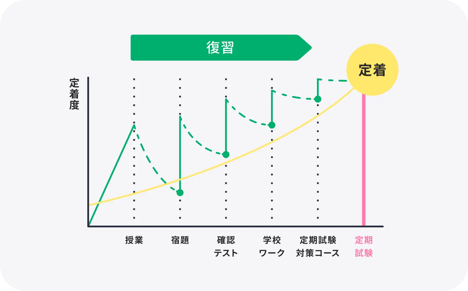 学校別の進度に完全対応した予習と復習の繰り返しで、徹底的な定期テスト対策