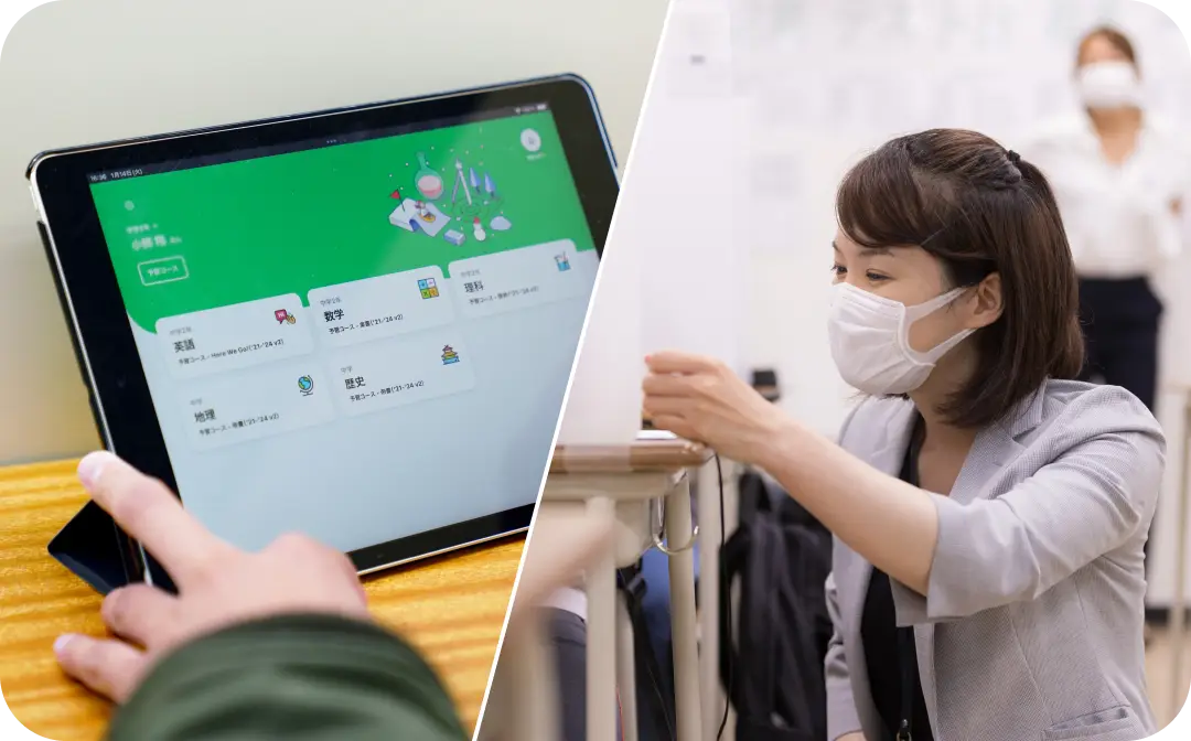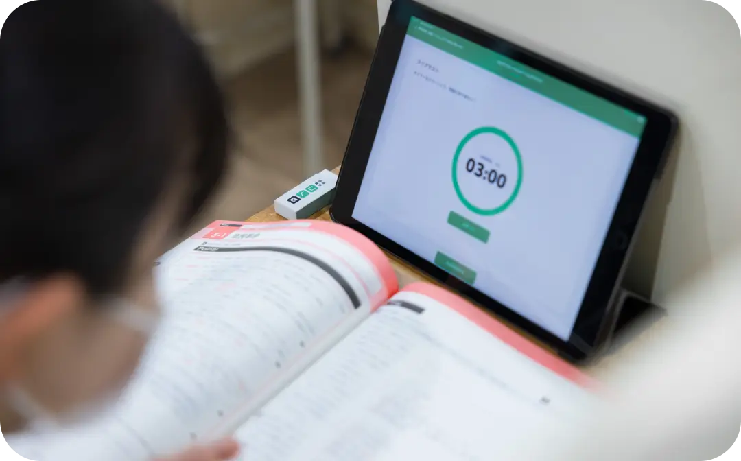 学習効率の最大化のため デジタル教材と プロ教室長による 指導のハイブリット式を採用