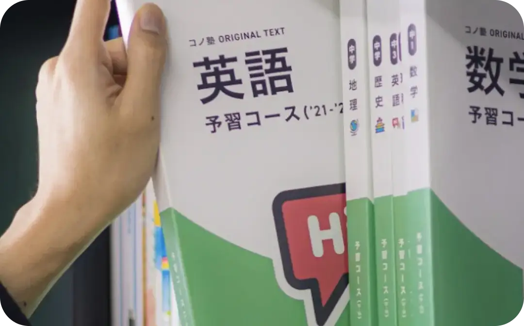 コノ塾では、過去の入試問題を徹底分析し、頻出の分野や解法を重点的に学習できるオリジナル教材を使用しています。